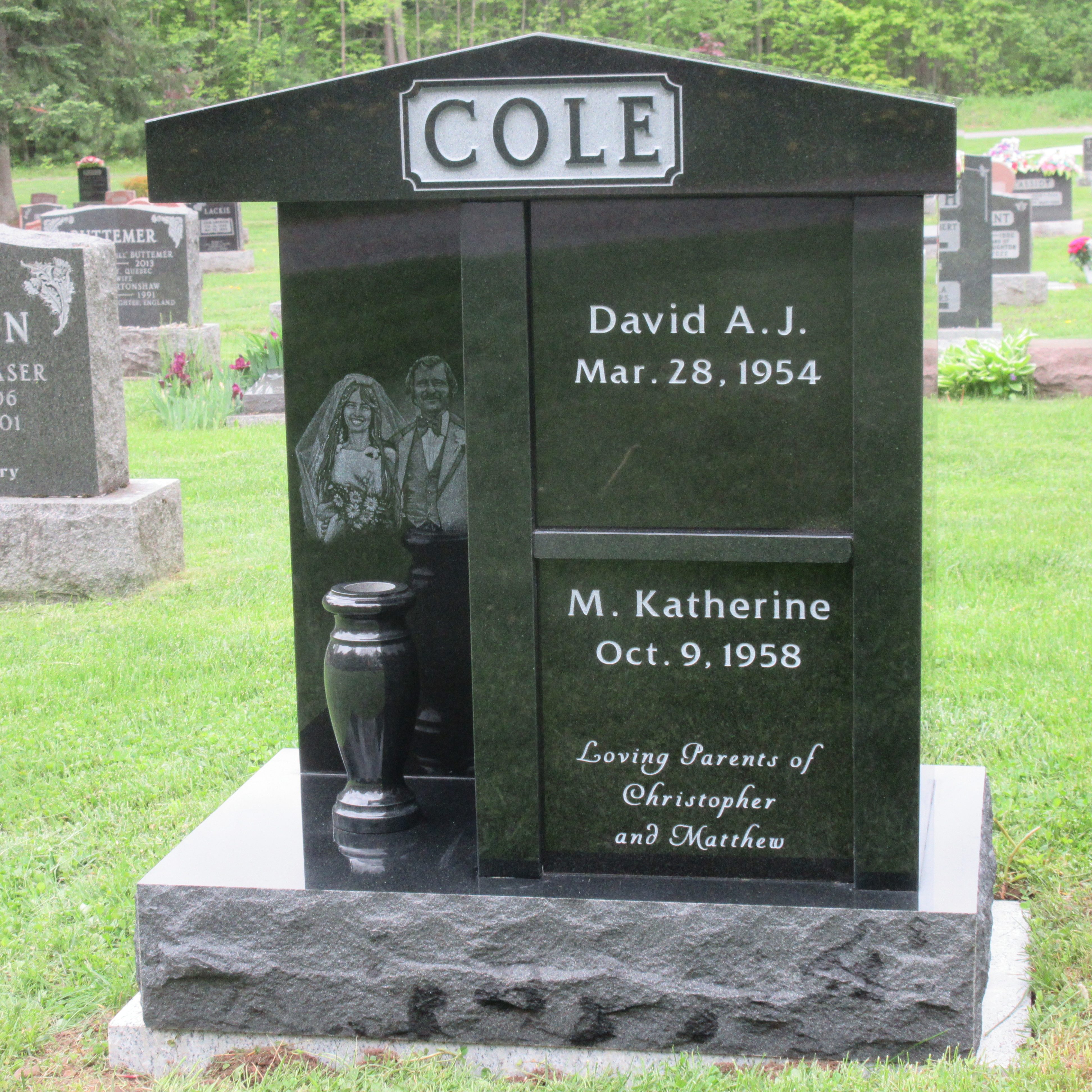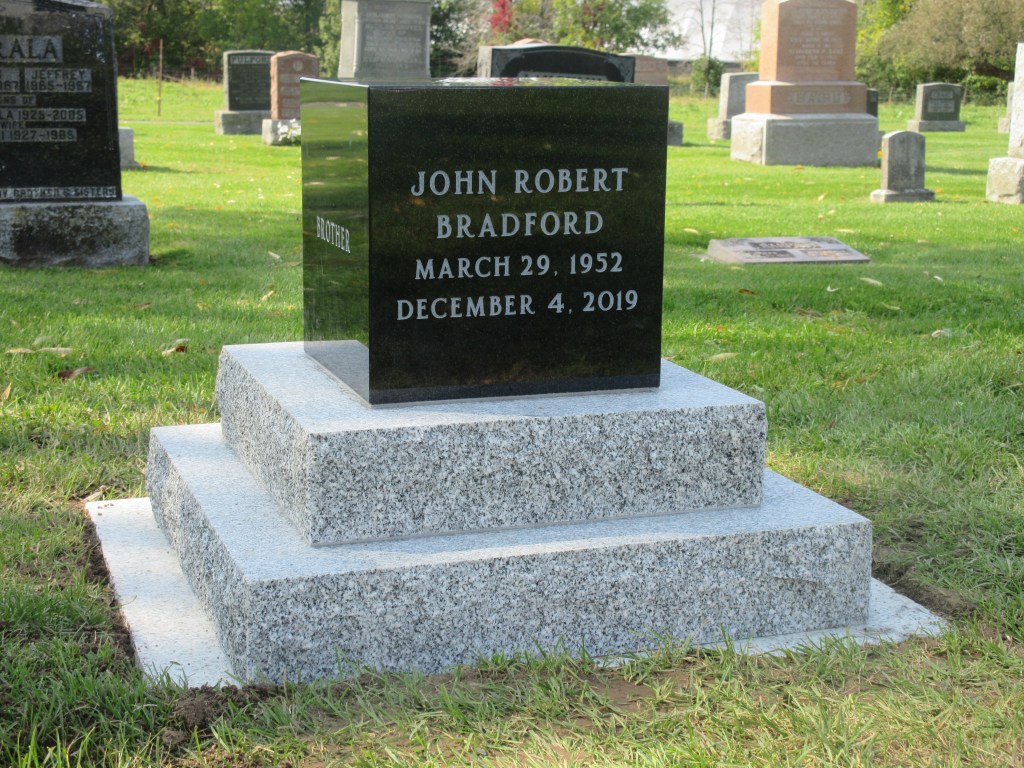 A cremation monument is installed on the cemetery plot and the remains are interred inside the granite cubes and sealed. Below are samples to guide your selection. Please contact us to design your custom monument.