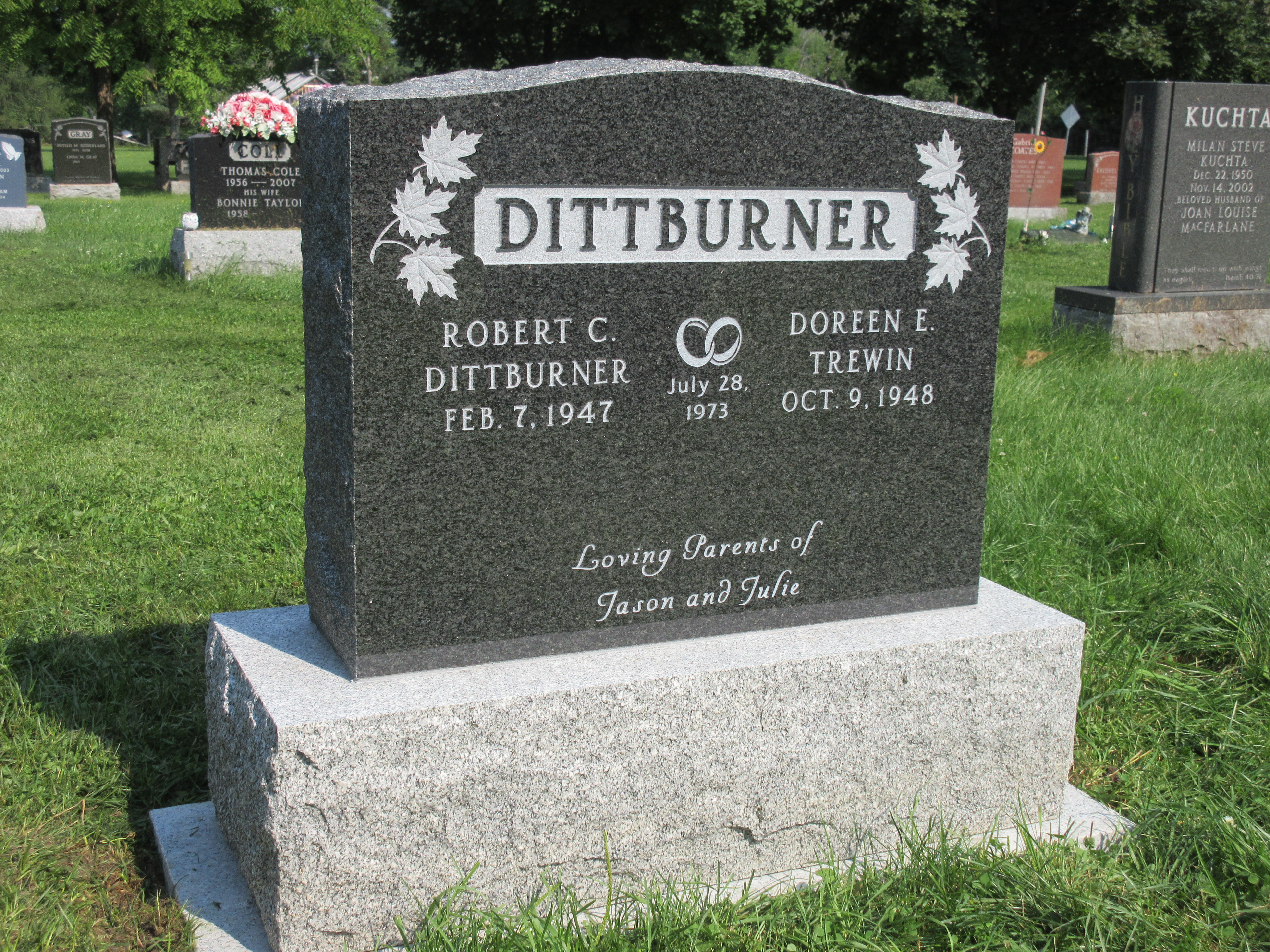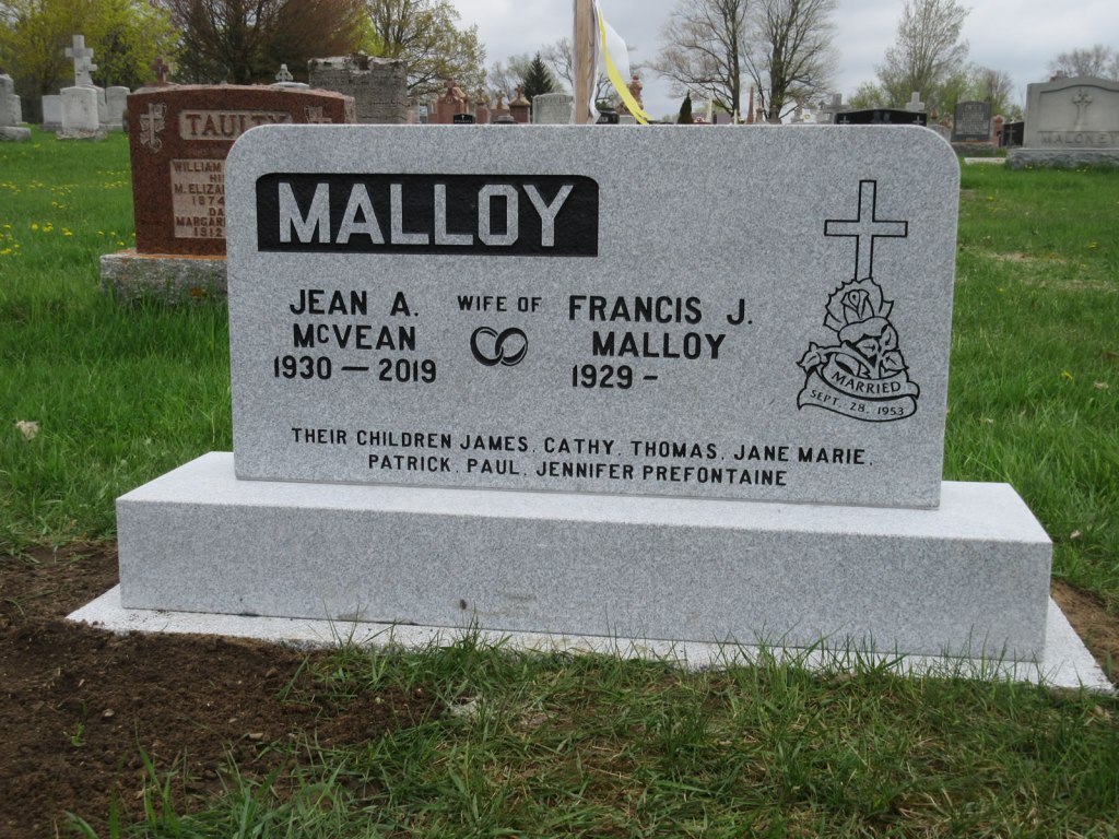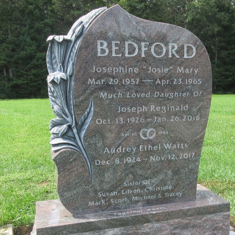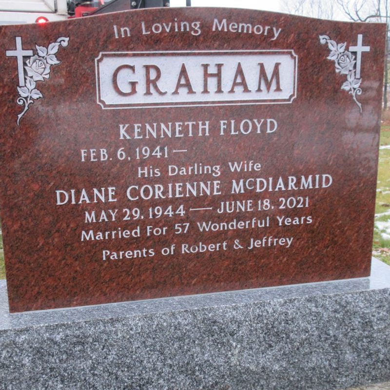Kinkaid Loney finishes your memorial with a lettering style that provides optimal results for the chosen colour of granite. Our knowledgeable staff can advise you of the best lettering style for your memorial.