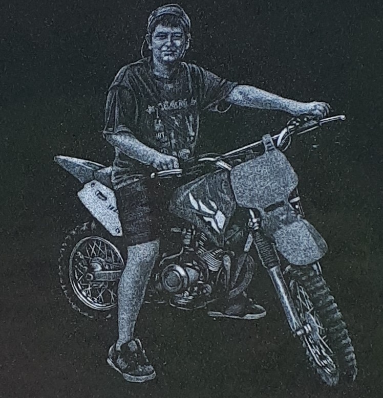Etchings are drawn free hand and add a personal touch to your memorial. Working from photos or momentoes our artists can etch portraits or scenes with exceptional detail onto your memorial. These pieces of art are a special way to personalize your memorial and to commemorate the life of your loved one.